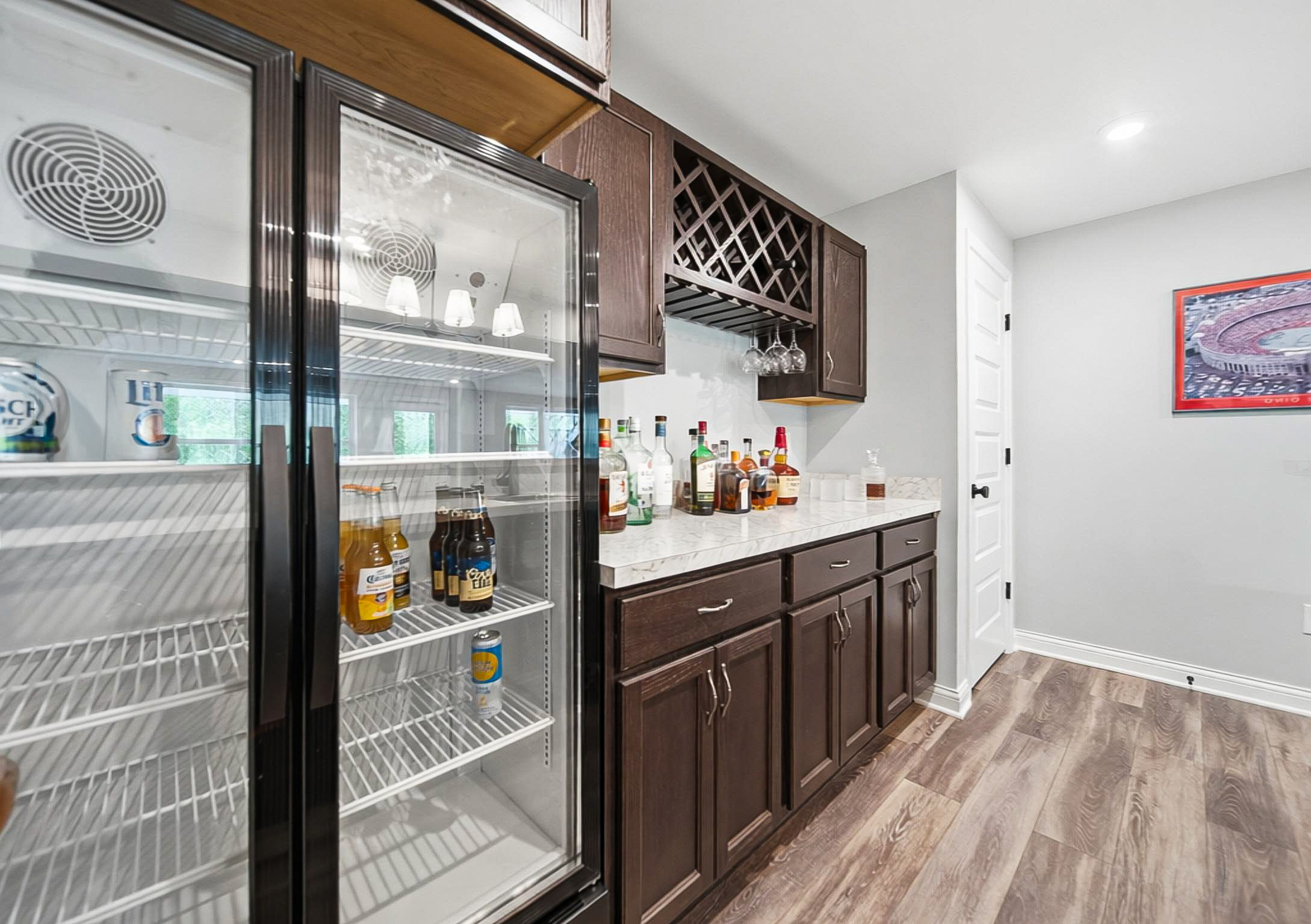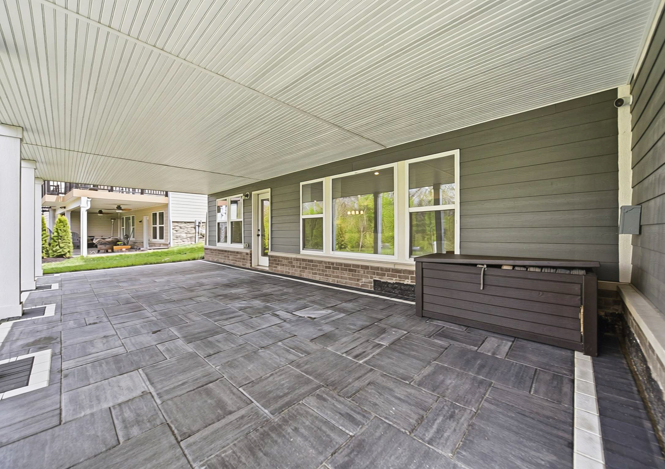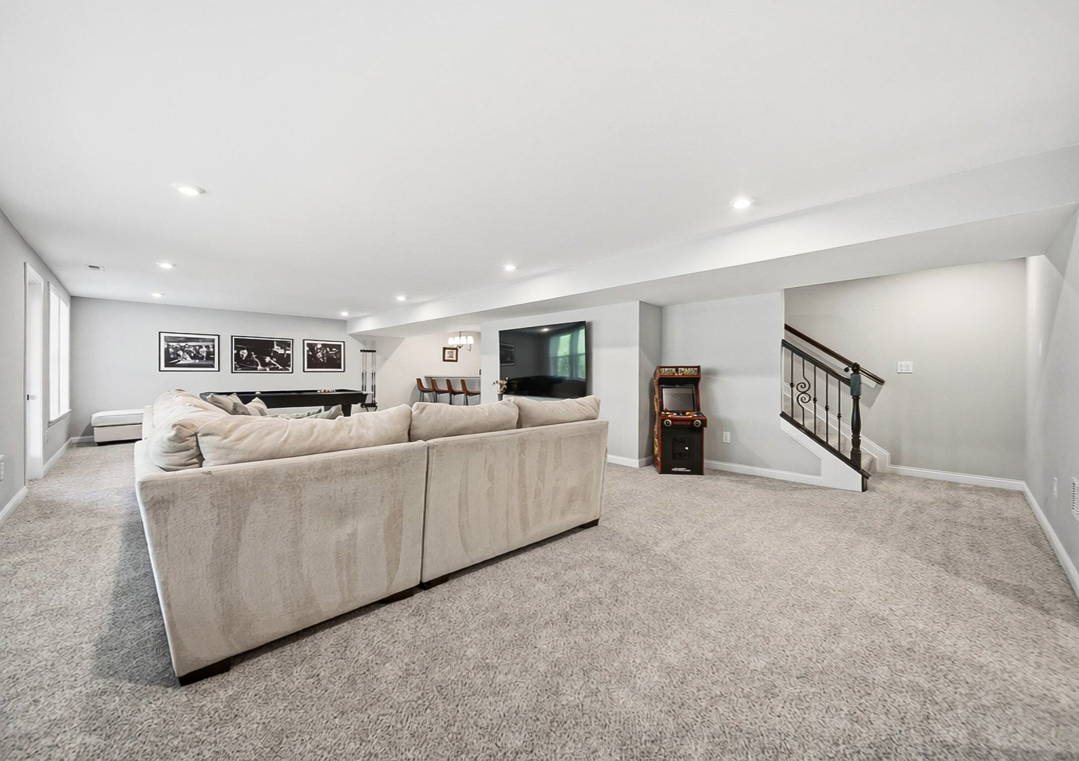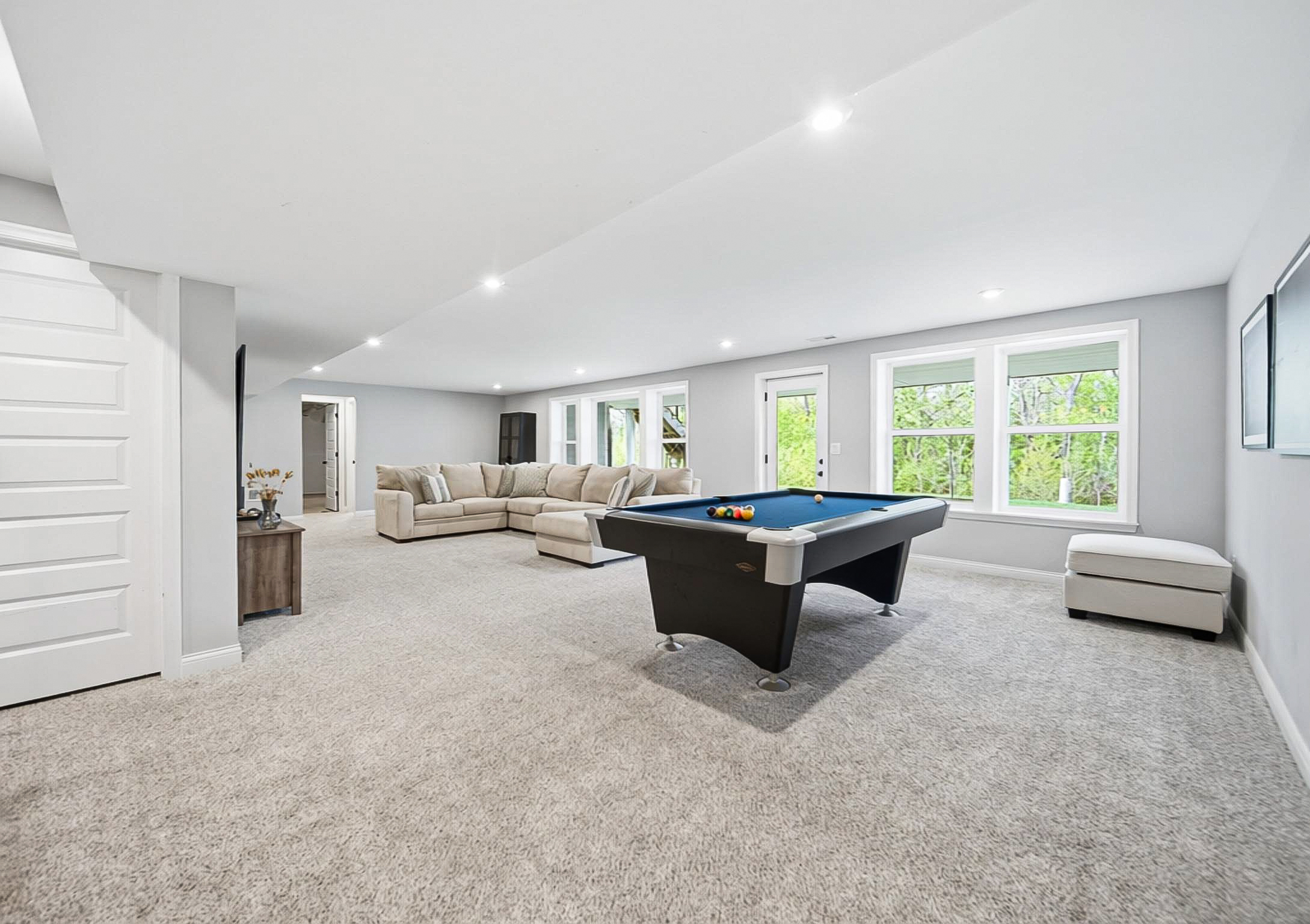 Upstairs you’ll find a huge primary suite with a sitting area, a beautifully appointed primary bath, and a custom closet. Three other large bedrooms share a second bathroom with a dual vanity. The full walkout basement adds a large finished space, complete with wet bar, that’s ready for game day. There’s also a third full bathroom, a large unfinished space perfect for a gym or storage, and a partially finished room that’s ready for your finishing touches. Step outside from the basement to the covered patio for those sunny days when you’d like a little extra shade as you stare at the woods contemplating how good life is.