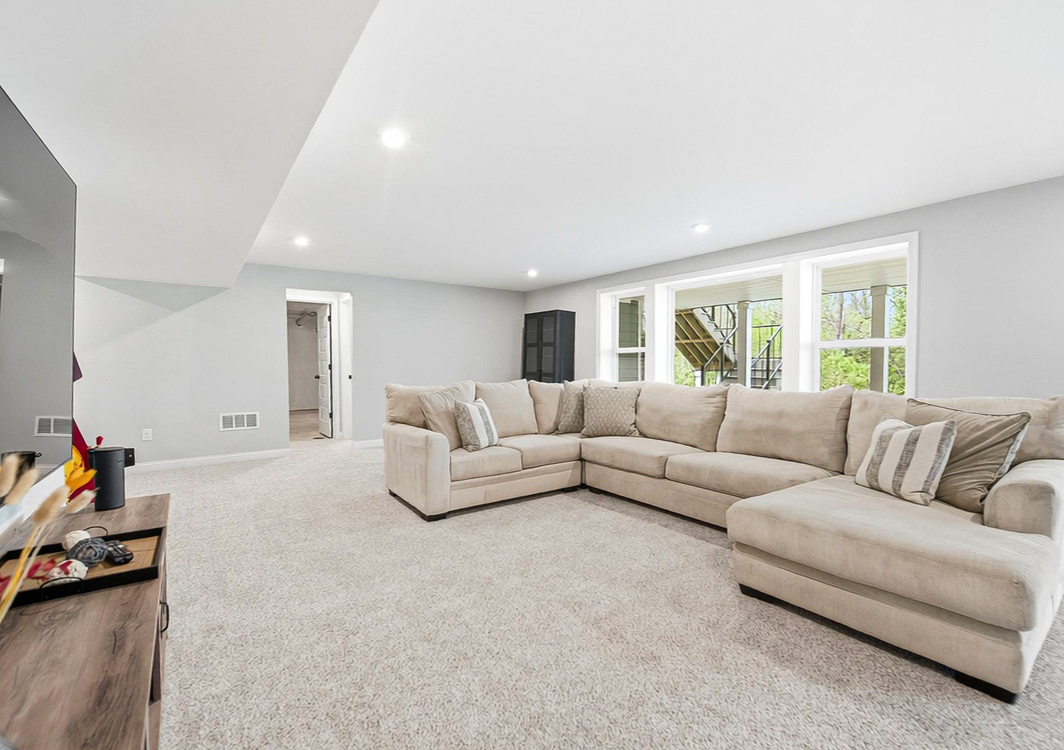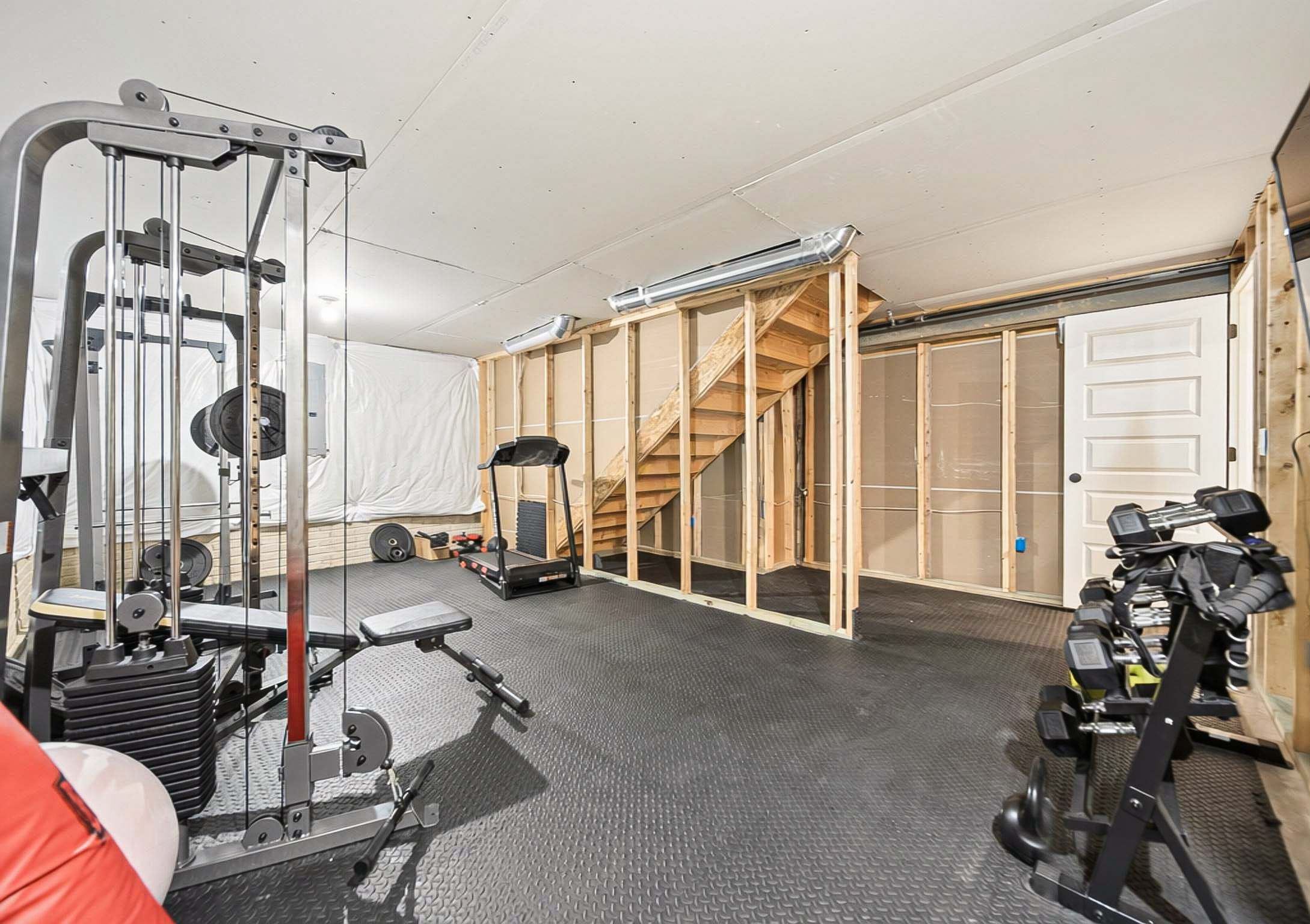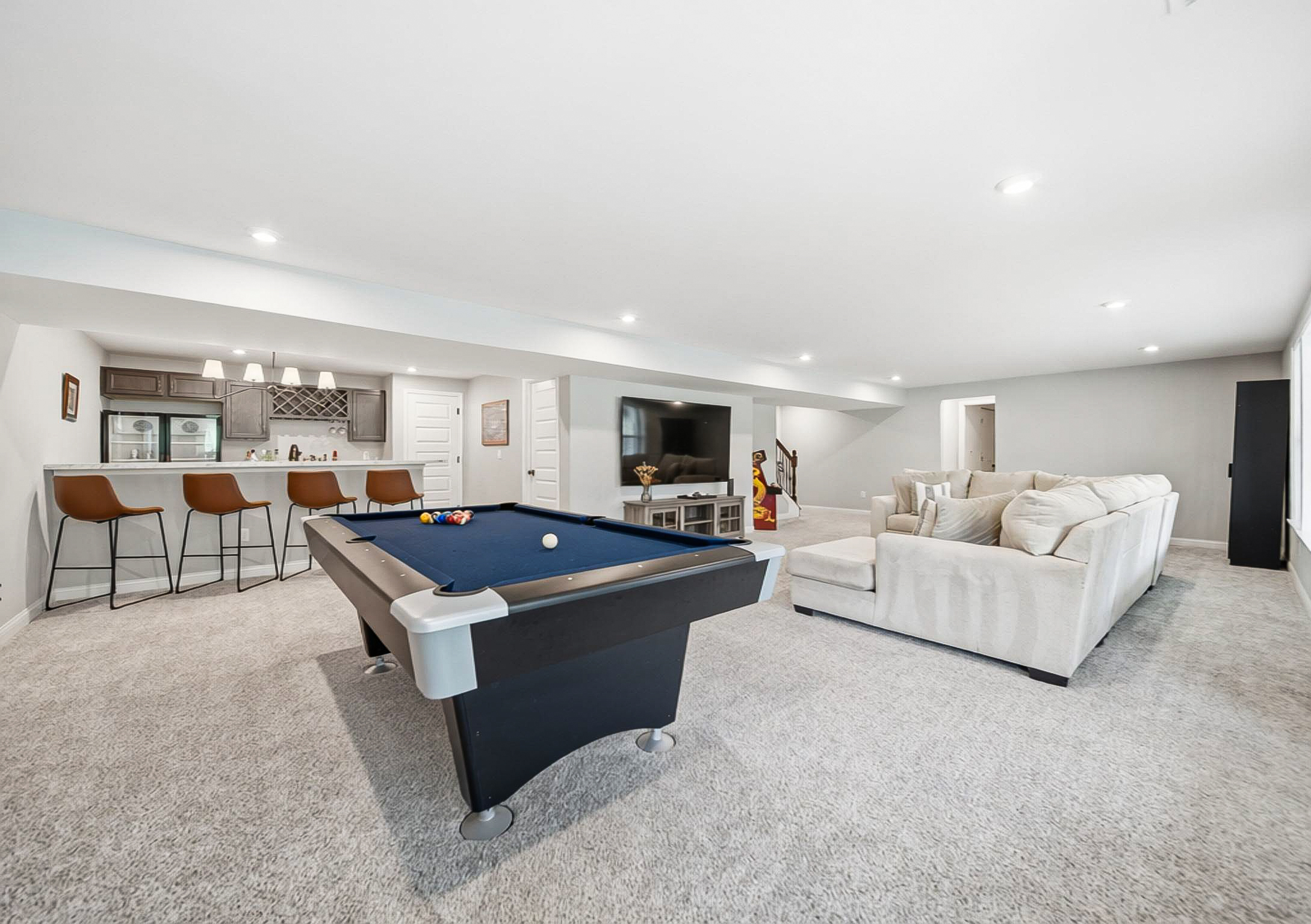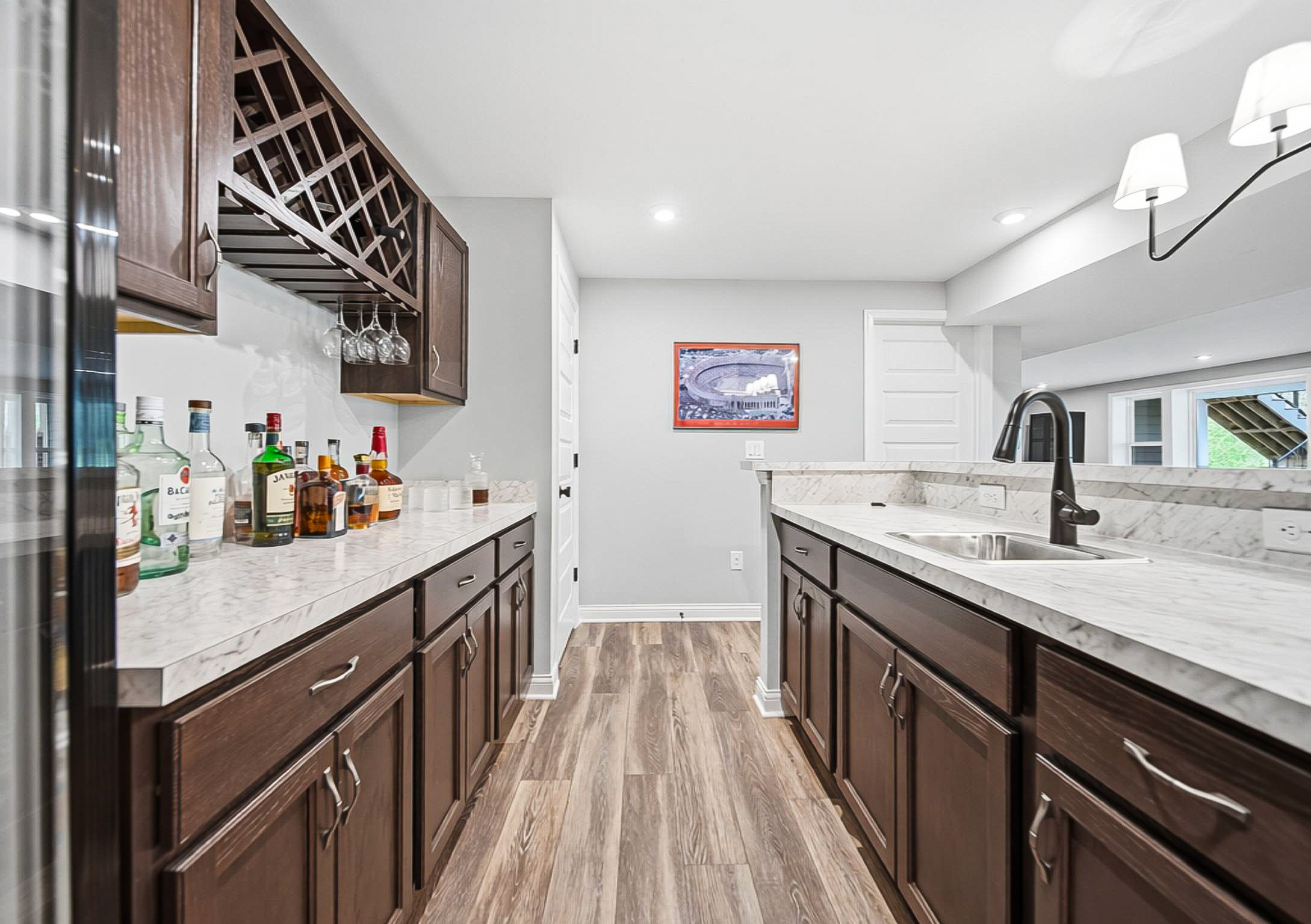 Upstairs you’ll find a huge primary suite with a sitting area, a beautifully appointed primary bath, and a custom closet. Three other large bedrooms share a second bathroom with a dual vanity. The full walkout basement adds a large finished space, complete with wet bar, that’s ready for game day. There’s also a third full bathroom, a large unfinished space perfect for a gym or storage, and a partially finished room that’s ready for your finishing touches. Step outside from the basement to the covered patio for those sunny days when you’d like a little extra shade as you stare at the woods contemplating how good life is.