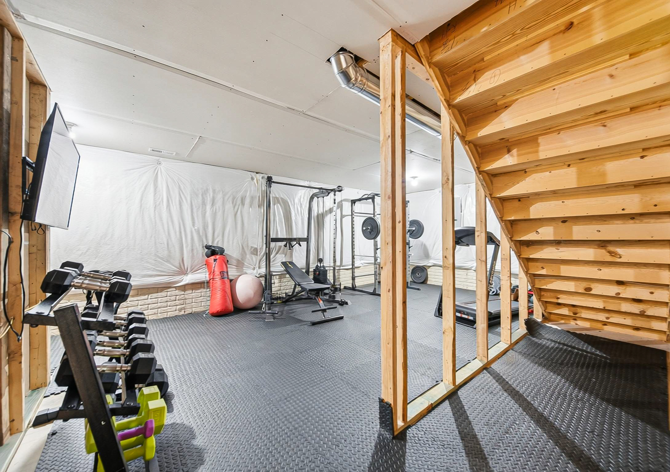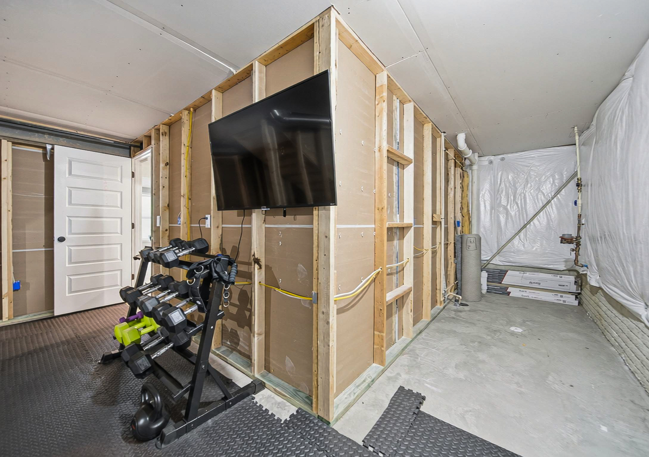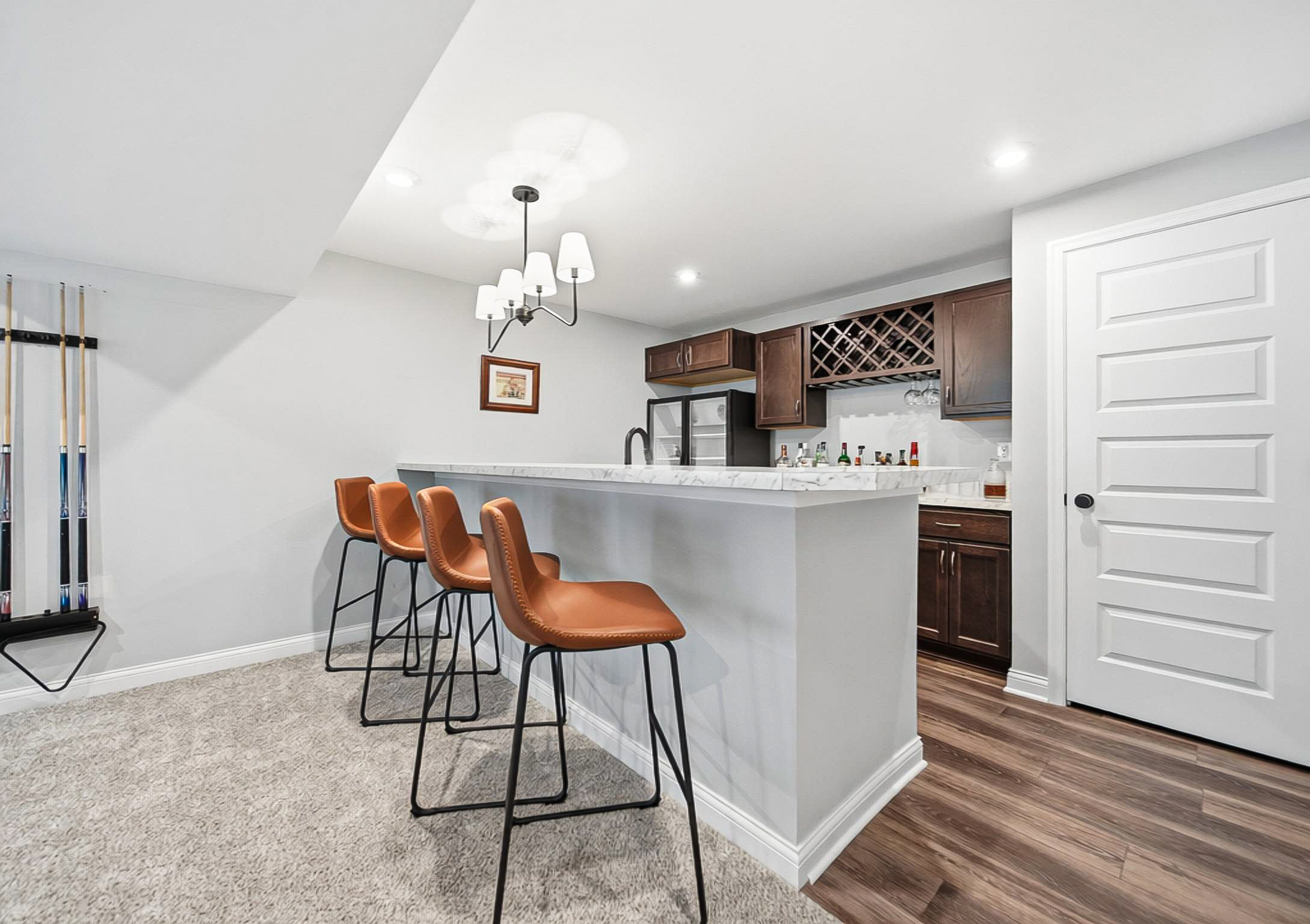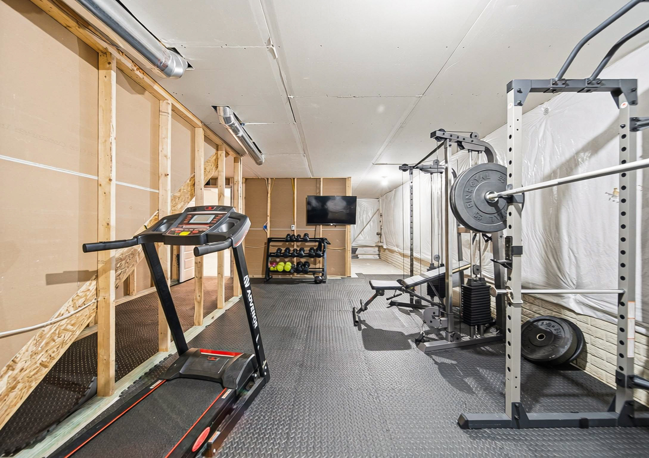 Upstairs you’ll find a huge primary suite with a sitting area, a beautifully appointed primary bath, and a custom closet. Three other large bedrooms share a second bathroom with a dual vanity. The full walkout basement adds a large finished space, complete with wet bar, that’s ready for game day. There’s also a third full bathroom, a large unfinished space perfect for a gym or storage, and a partially finished room that’s ready for your finishing touches. Step outside from the basement to the covered patio for those sunny days when you’d like a little extra shade as you stare at the woods contemplating how good life is.
