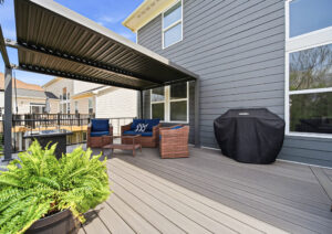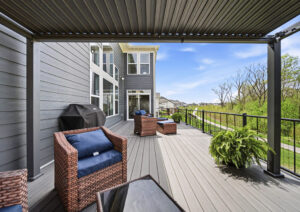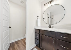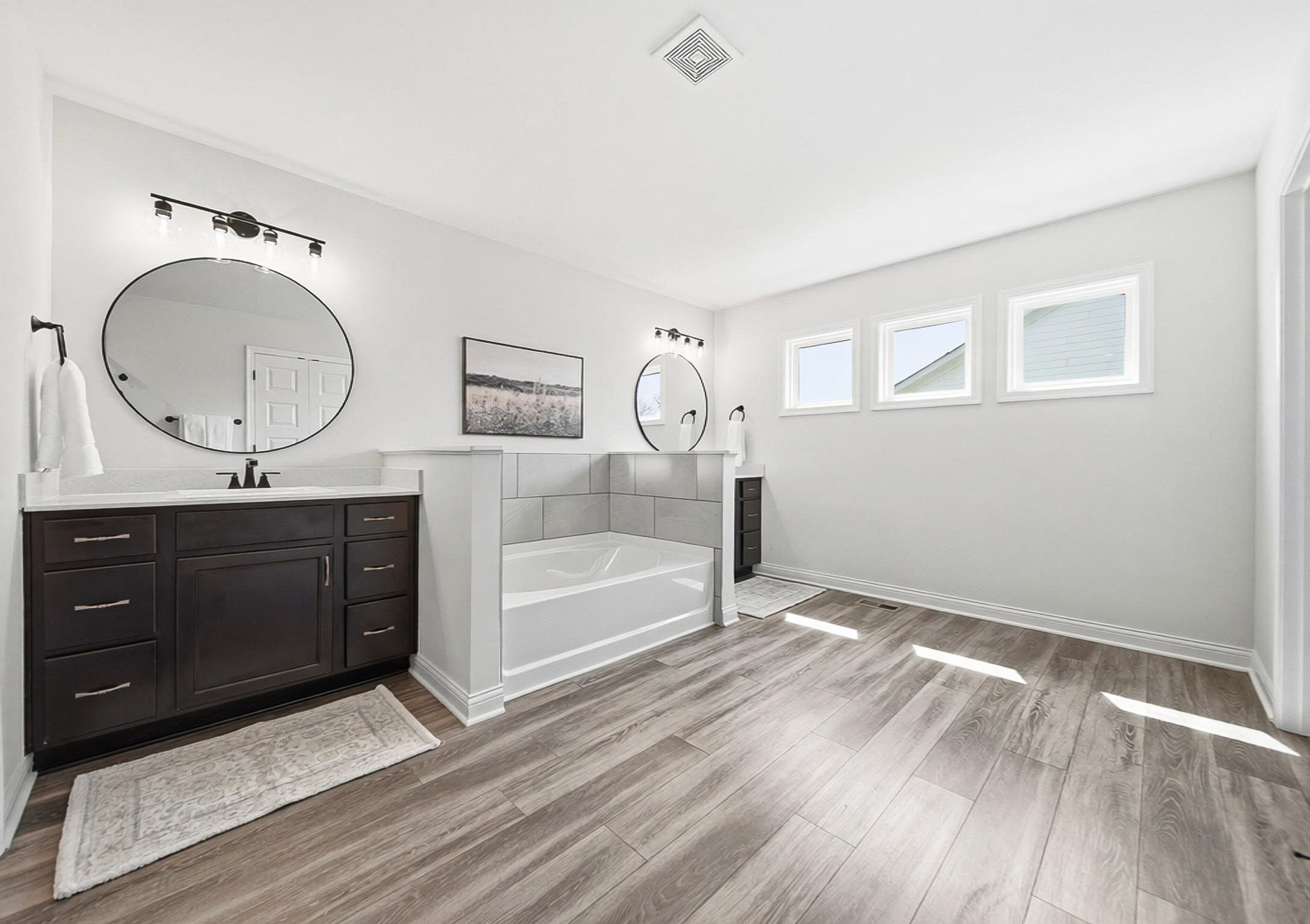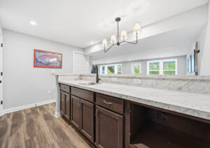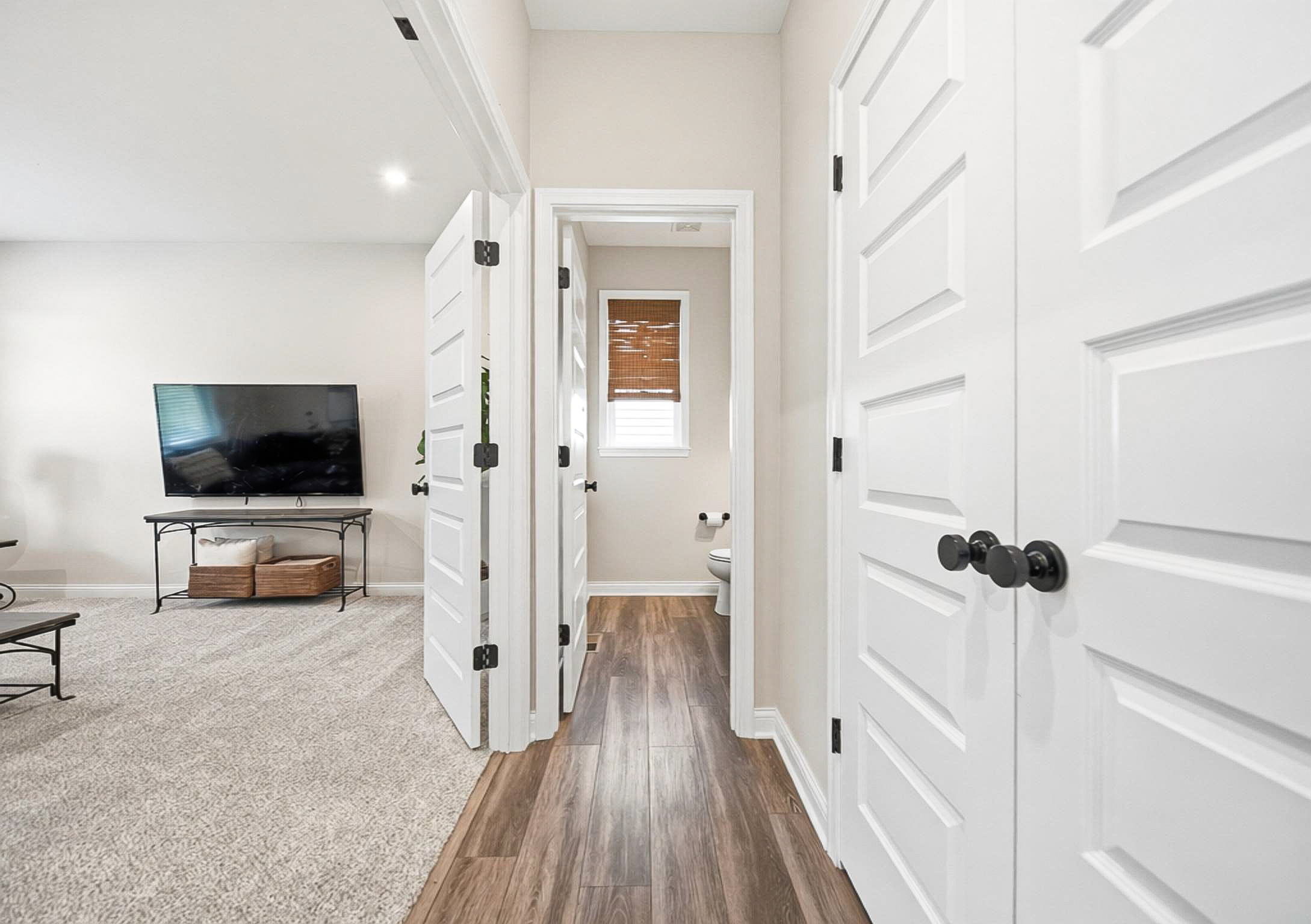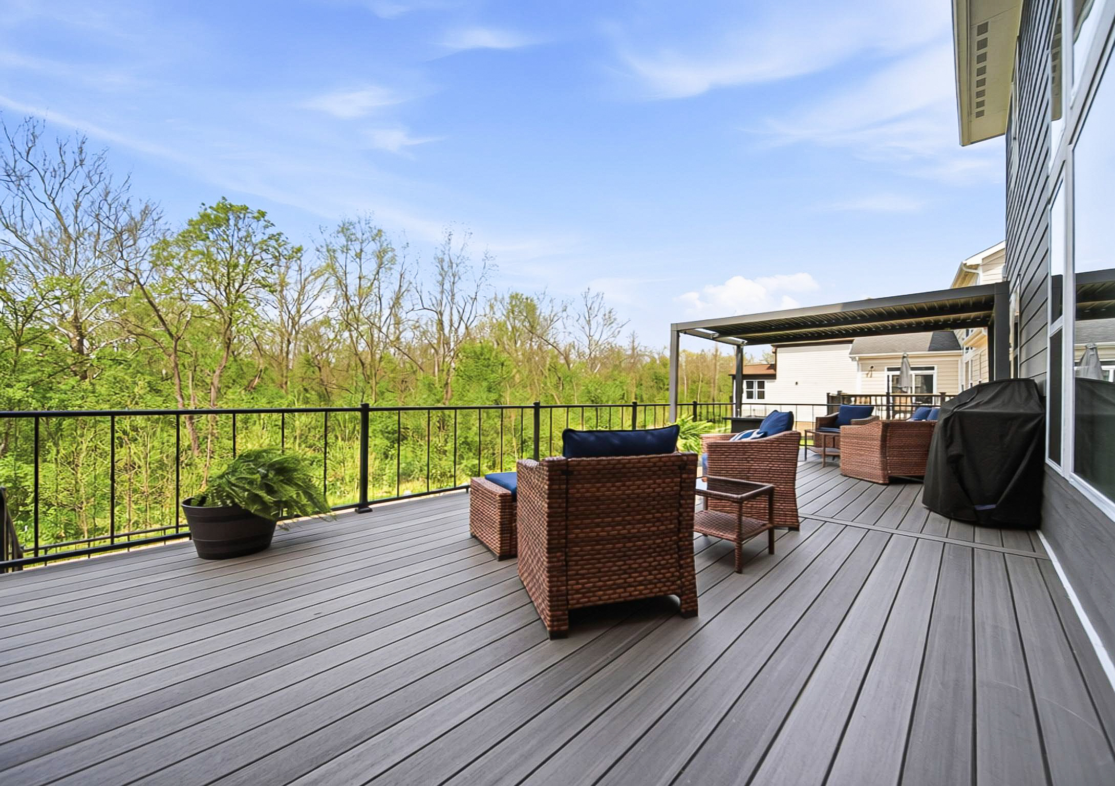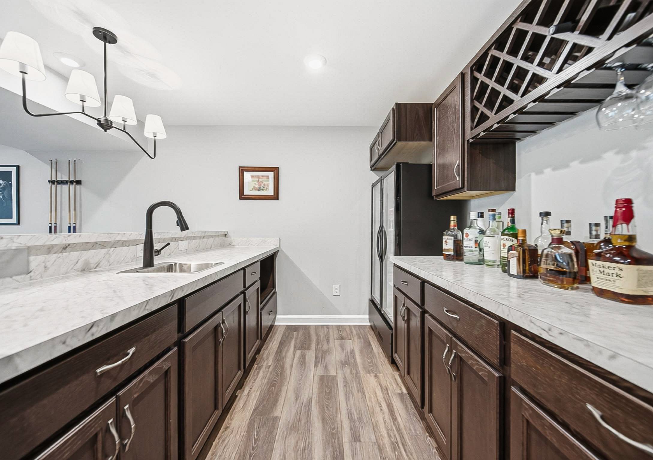 Upstairs you’ll find a huge primary suite with a sitting area, a beautifully appointed primary bath, and a custom closet. Three other large bedrooms share a second bathroom with a dual vanity. The full walkout basement adds a large finished space, complete with wet bar, that’s ready for game day. There’s also a third full bathroom, a large unfinished space perfect for a gym or storage, and a partially finished room that’s ready for your finishing touches. Step outside from the basement to the covered patio for those sunny days when you’d like a little extra shade as you stare at the woods contemplating how good life is.