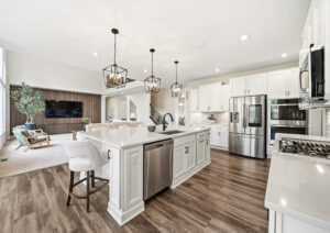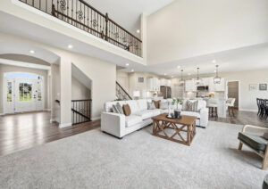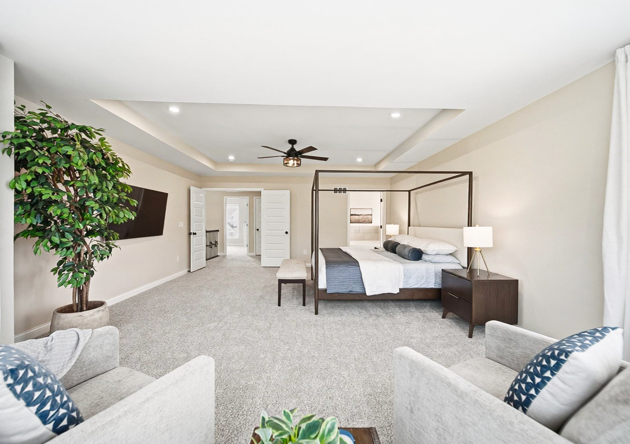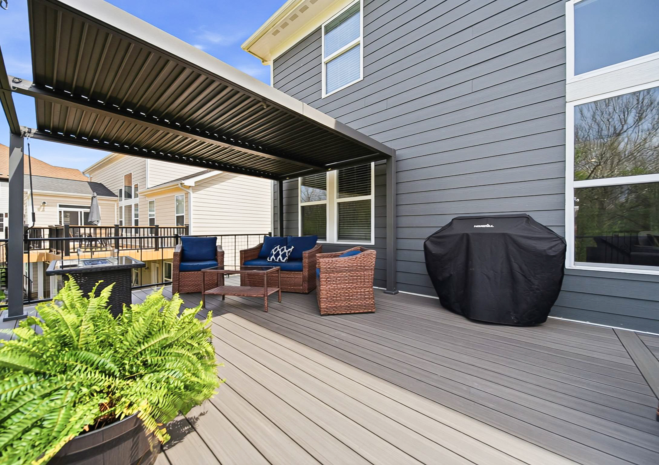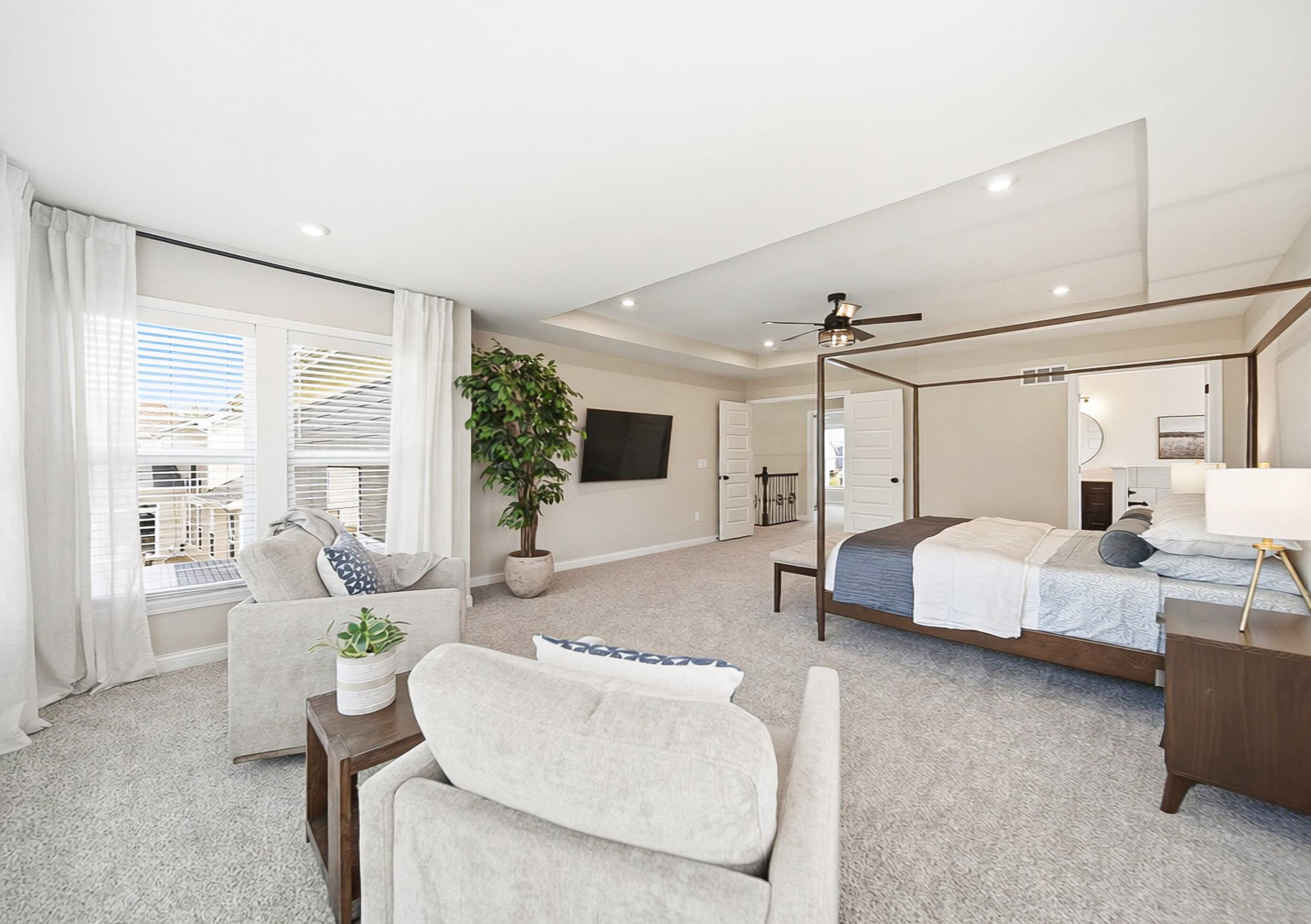 Skip the 9-month wait for new construction. This like-new home with 4,000 square feet of living space on 3 levels and $100,000 in upgrades is ready for you today! From the moment you step into the foyer, the natural light and high ceilings create a sense of lightness and space. To your right is a spacious office with French doors, and to the left, a dining room for formal meals. As you continue into the 2-story great room, the first thing you notice is the view from the floor-to-ceiling windows. The open living area flows naturally into the chef’s kitchen anchored by an island worthy of the name and a large everyday eating area. From there, step out onto the patio to enjoy your morning coffee or relax with a cool drink at the end of the day. To the right of the great room is a flex room that can be a second office, a play room, or just a quiet area to relax with a good book.